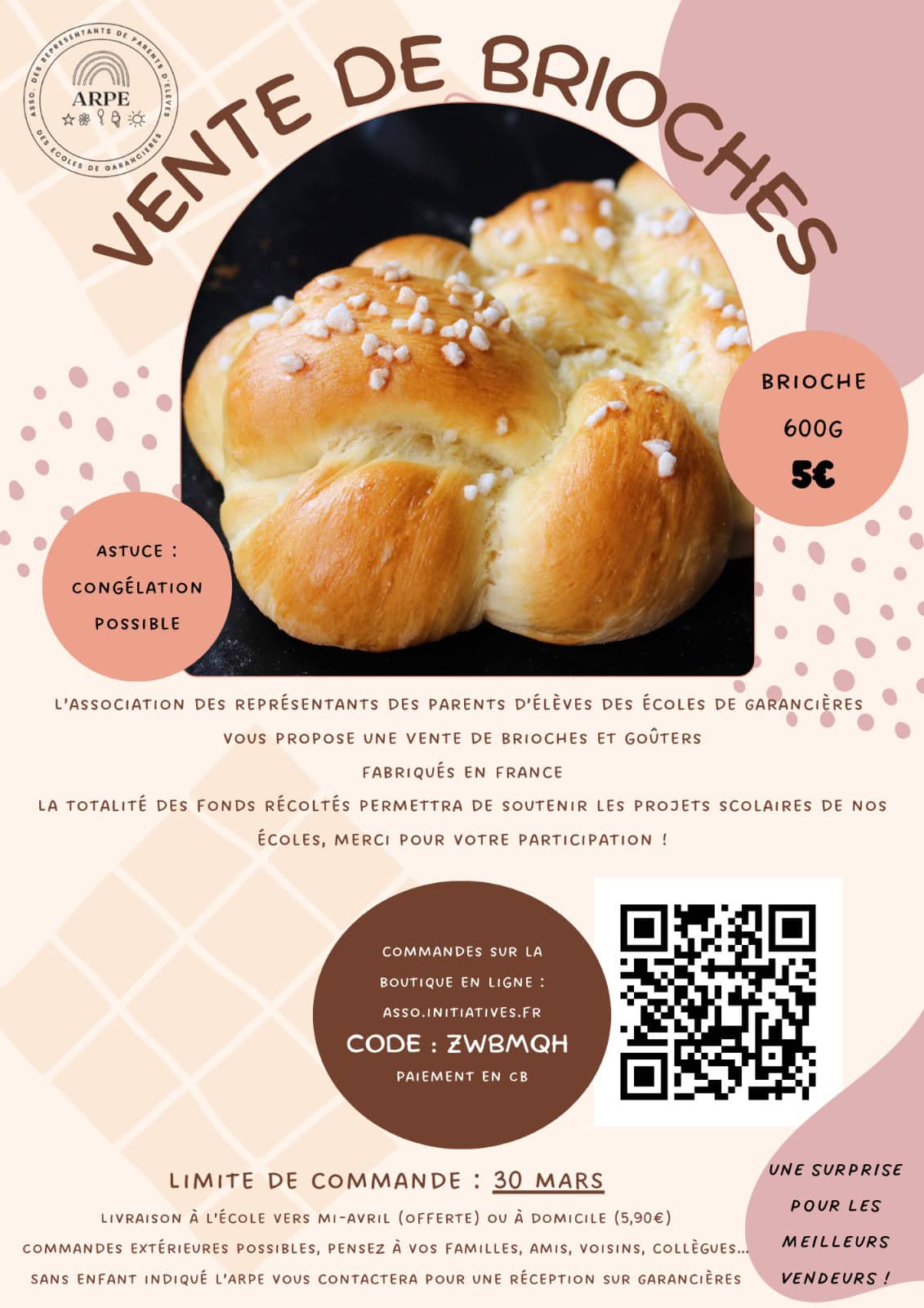 ARPE: Vente de brioches pour soutenir les projets scolaires.