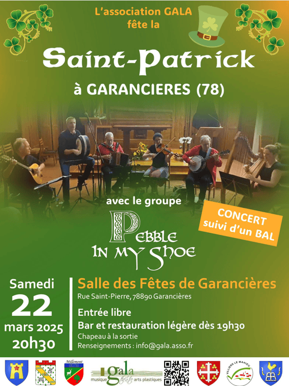 Samedi 22 mars 2025, l'association GALA fête la Saint-Patrick à la salle des fêtes de Garancières